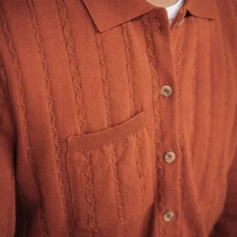 leur jeu de lignes graphiques se retrouvent dans ce tricot jersey-mousse.